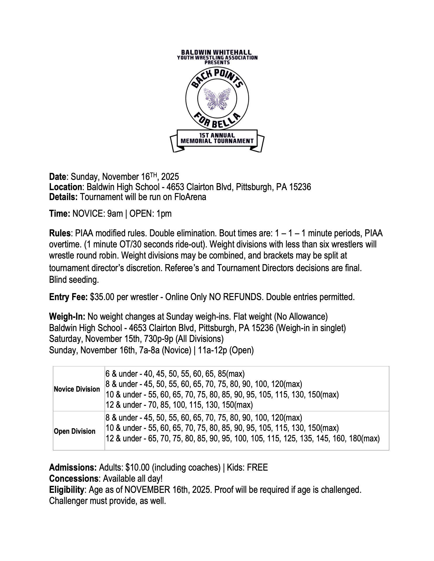 Back Points For Bella - 1st Annual Memorial Tournament